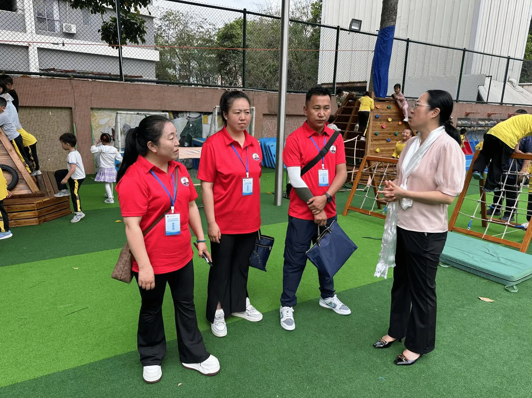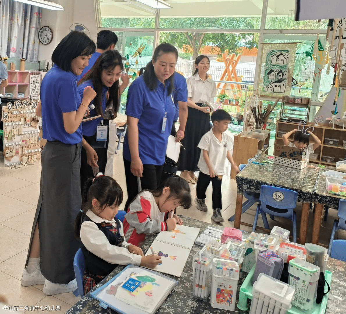 随后,培训班学员先后走进三角镇中心小学、中心幼儿园及三角中学,进一步拓宽教育视野,汲取先进办学经验。在三角镇中心幼儿园,园长陈海秋向学员们详细介绍了幼儿园“以童为本,快乐成长”的办园理念及特色课程体系。学员们细致观摩了融合本土特色的环境创设与教学活动,岭南童谣展演中孩子们纯真的笑脸,混龄区域活动中自主探究的专注神情,无不彰显着“游戏化学习”的教育智慧。