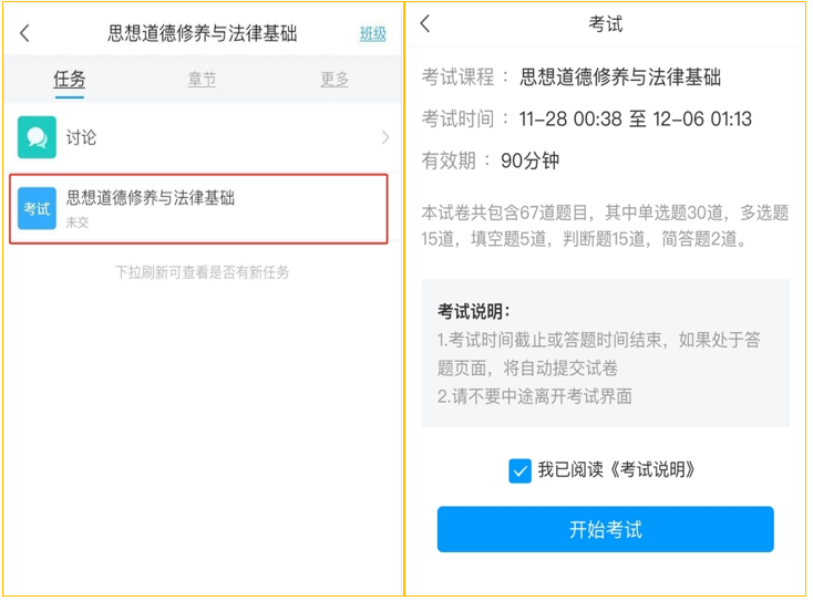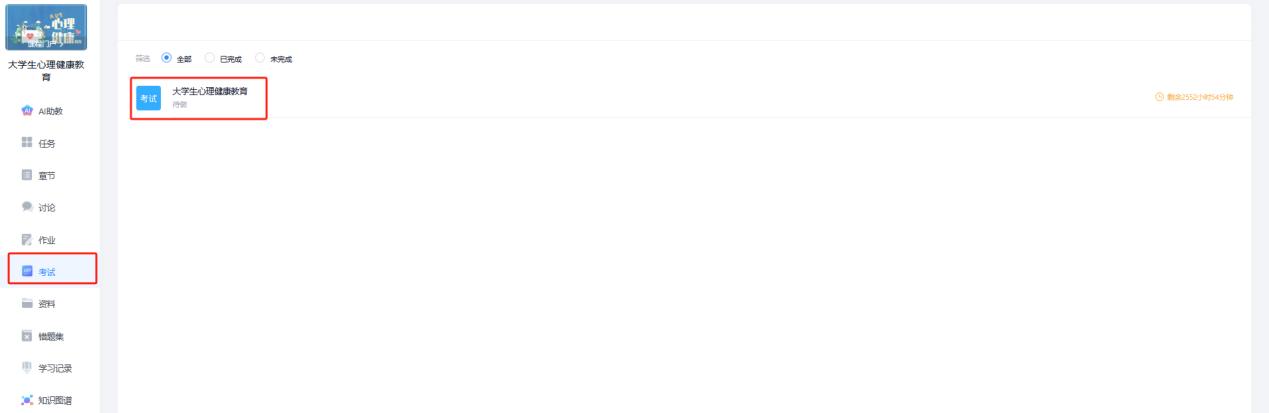 6.到达考试规定的时间内,点击课程页面的【任务】下的考试,即可参加考试,在规定的时间内完成答题,点击提交即可。