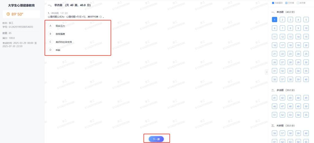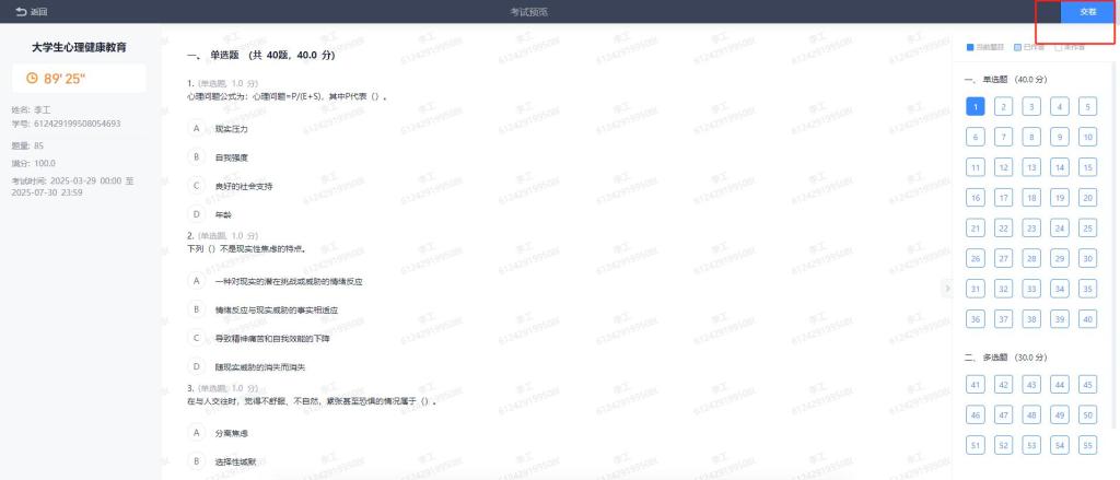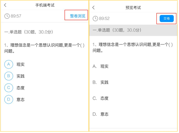 7.到达考试规定的时间内,点击课程页面的【考试】即可参加考试,在规定的时间内完成答题,点击【提交】即可。