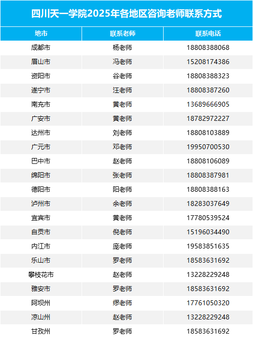各地市州、区县招生咨询老师及联系方式