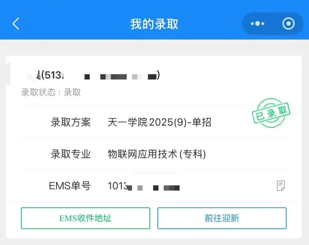 查看自己的录取通知书物流单号
