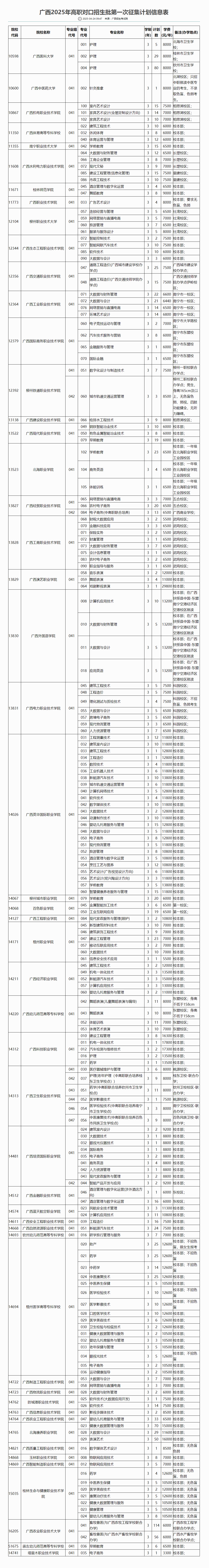 广西2025年高职对口招生批第一次征集计划信息表发布