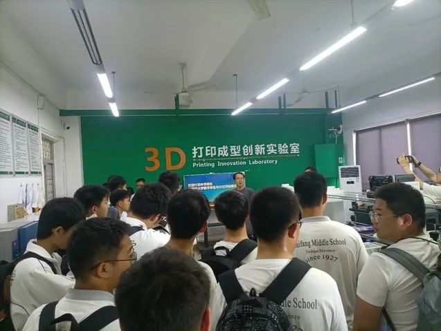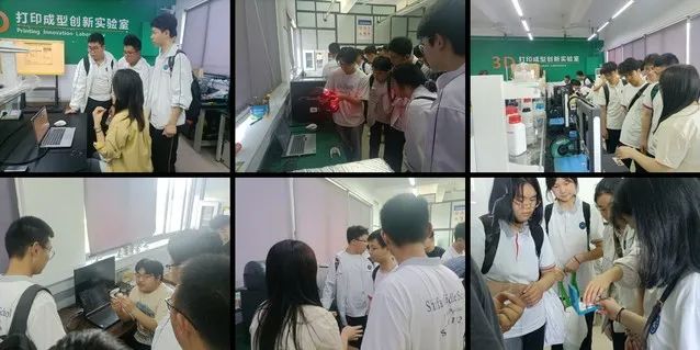随后,学院陈刚副教授补充介绍实践站的相关设备以及3D打印的工作原理。接着带领学生进入实践环节。在摆放着十余台先进设备的实验区,熔融沉积成型设备、DLP光固化快速成型机、3D打印气溶胶雾化系统等不同原理的3D打印机依次排开。通过建模-扫描-切片-打印全流程拆解,60名学生被划分为三大组九小组,在学院专业志愿者指导下展开沉浸式学习。