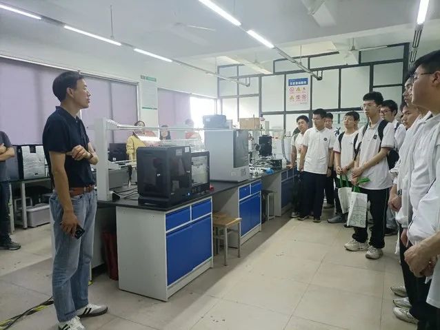 活动伊始,材料与科学工程学院教授兼什邡中学副校长彭必友以特殊视角为同学们开启科技之门。彭教授通过对比中学实验室与高校科研平台的区别,深入浅出地阐释了数字孪生技术的核心价值。在谈及3D打印技术时,彭教授从分层制造、逐层叠加的基础原理讲起,延伸到航空航天、医疗植入等尖端应用领域,最后以教育工作者身份勉励同学们:今天的研学不仅是技术体验,更是一粒创新种子的播种。
