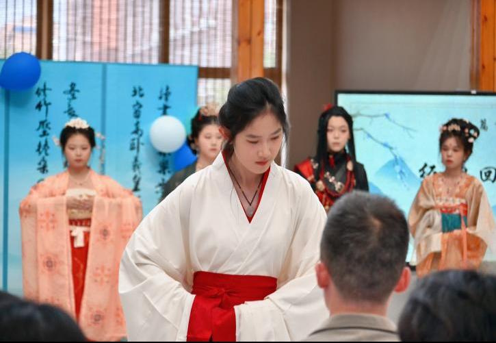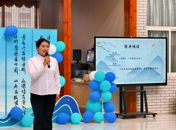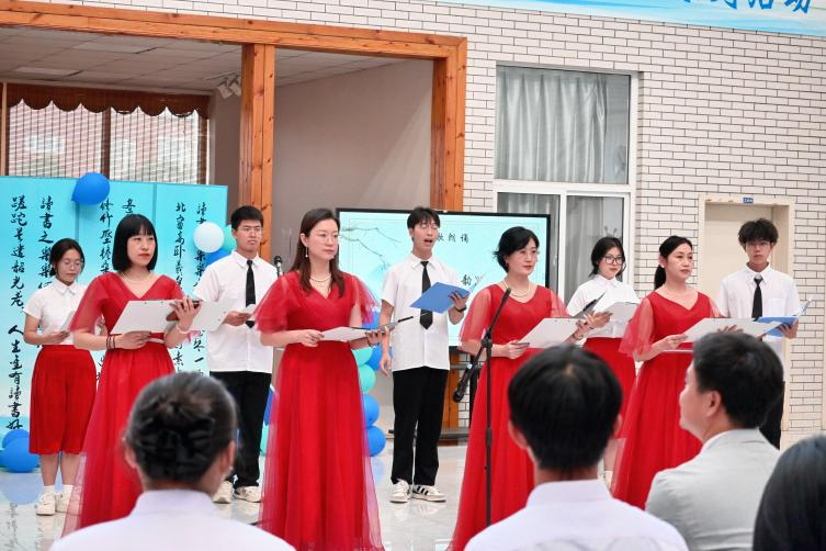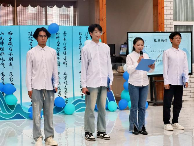 学生代表王子怡深情朗诵《诗经》《四时读书乐》文学经典片段,他们的声音婉转悠扬,仿若穿越千年,将古典文学的韵味与魅力娓娓道来。