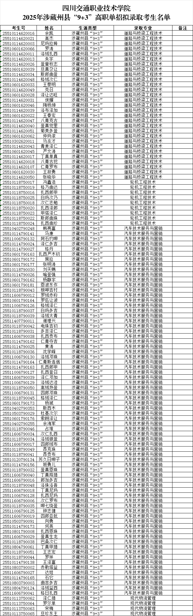 2025年涉藏州县“9+3”高职单招拟录取考生名单