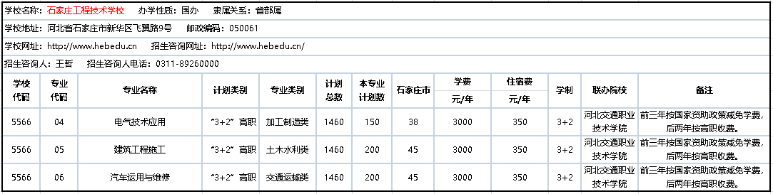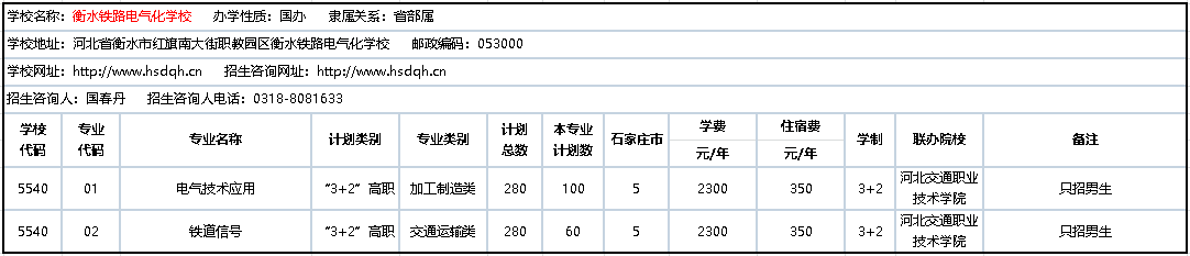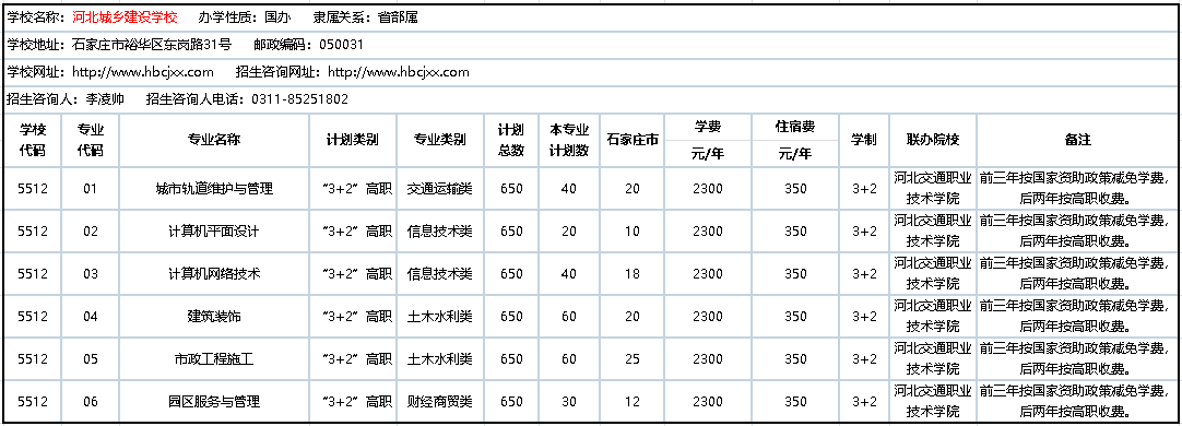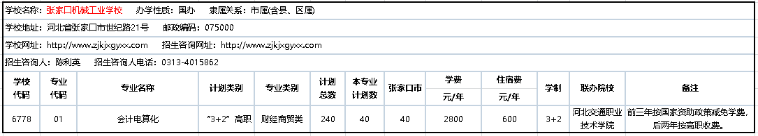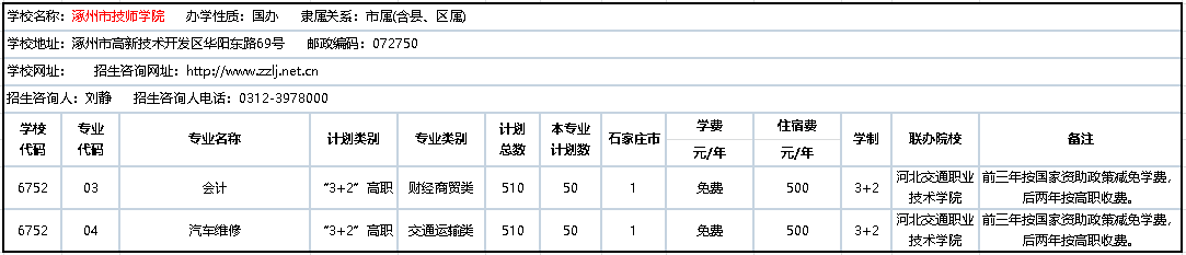 2020年3+2联办中职学校招生计划