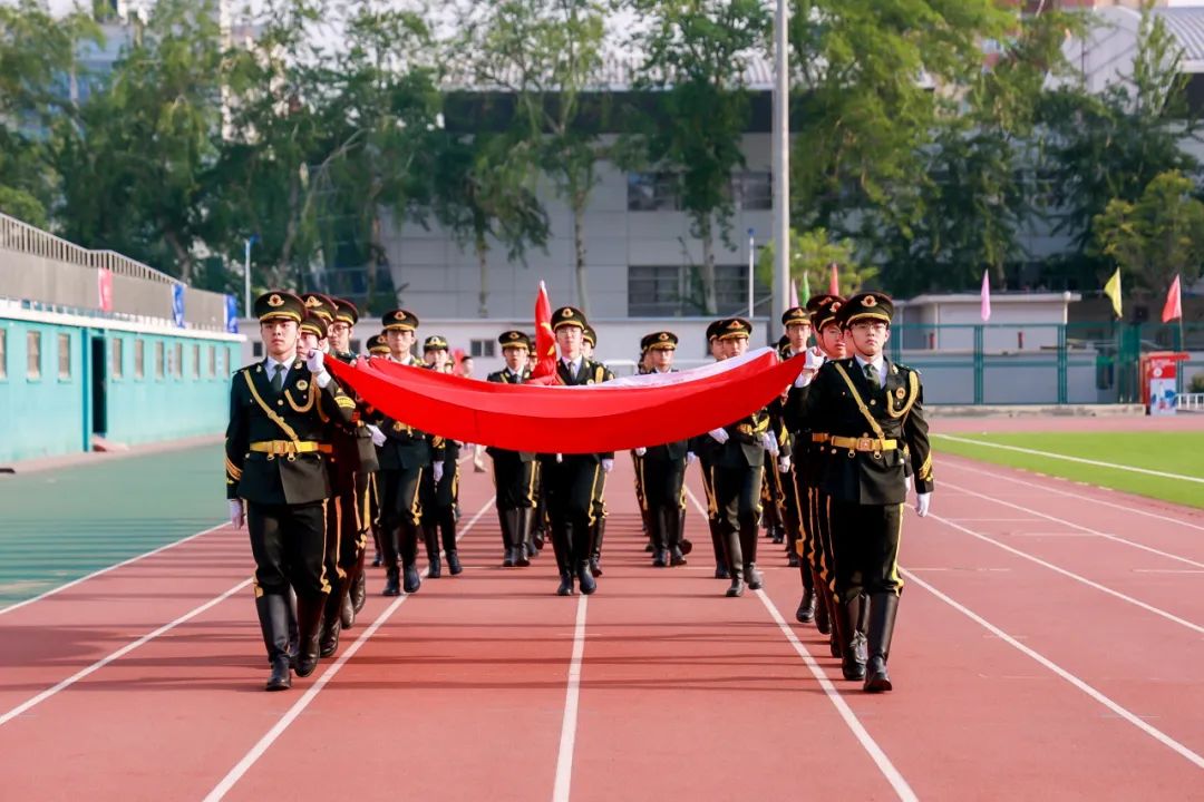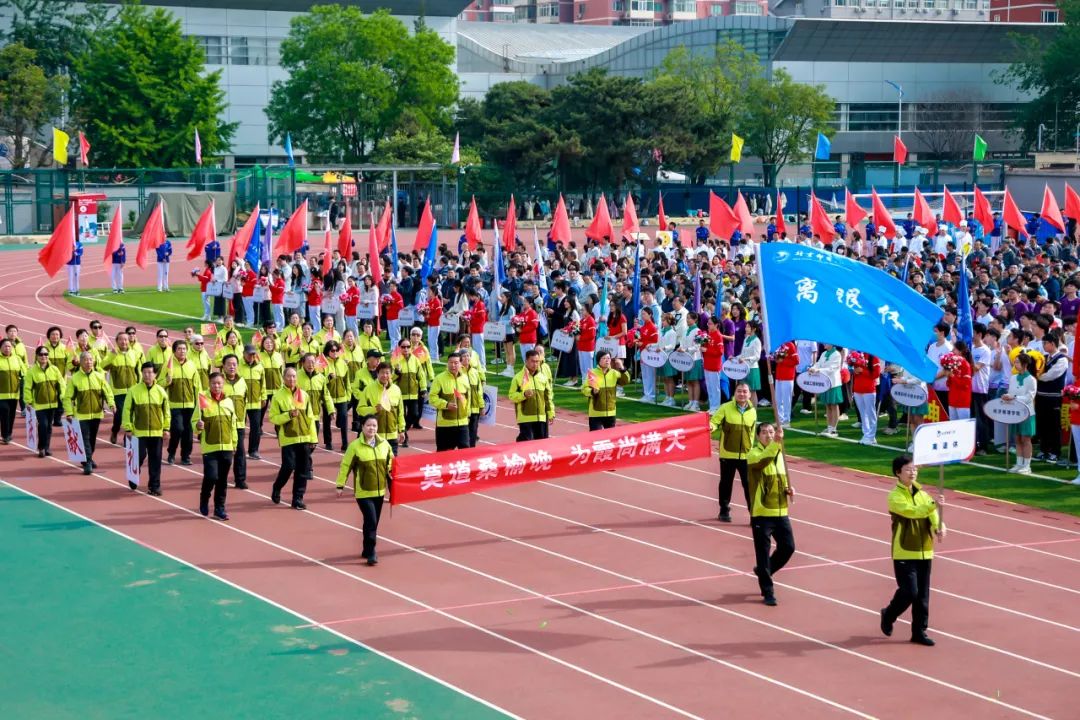 在国旗队、校旗队的引领下,1个裁判代表队、16个学生代表队、1个师生代表队和17个教职工代表队及校友、离退休、幼儿园代表队有序入场,整齐划一的步伐,铿锵有力的口号,展现了北邮人积极进取、昂扬向上的精神风貌。