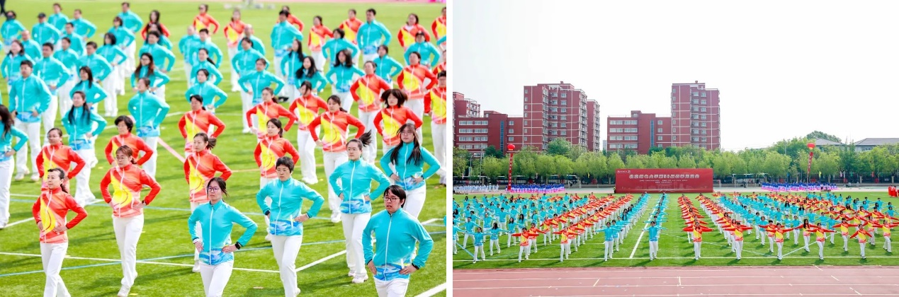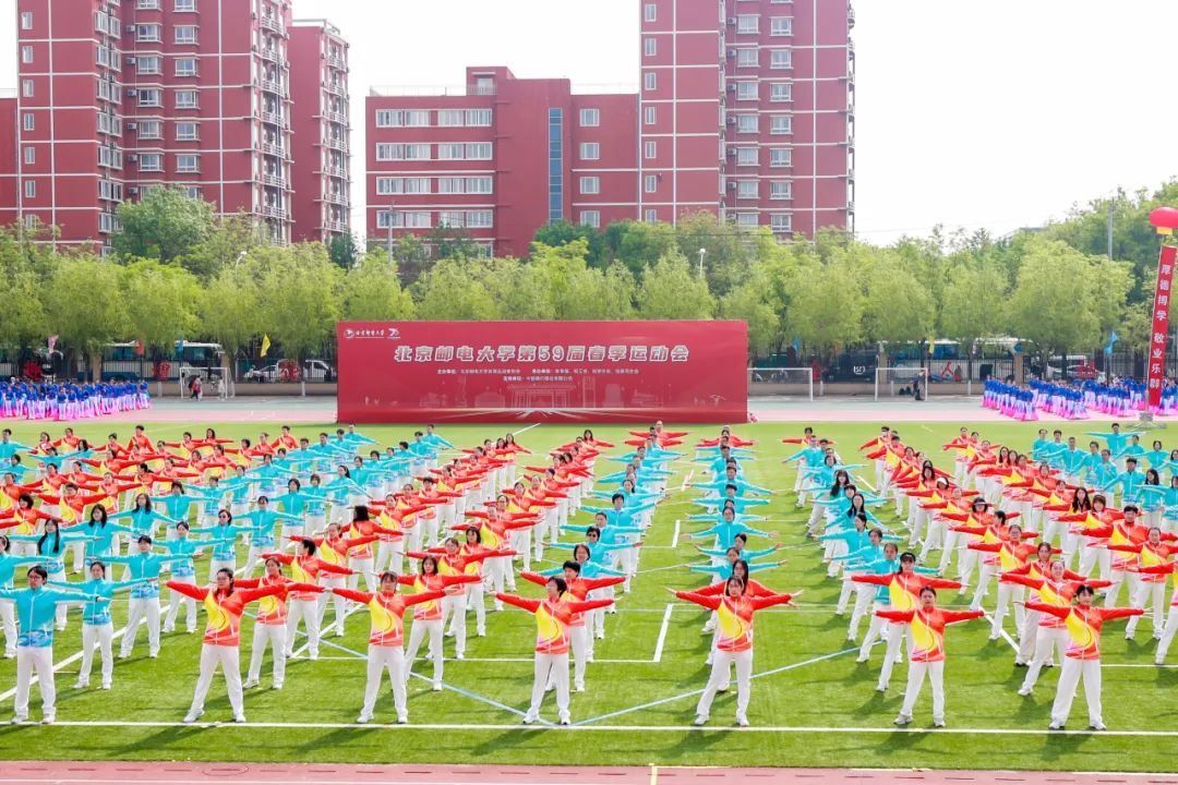 开幕式上进行了精彩的教职工广播体操、学生团体操和街舞、武术、孔雀舞表演,师生们组成的 “1955-2025”“70”“BUPT”字样,表达了对学校建校70周年的生日祝福。