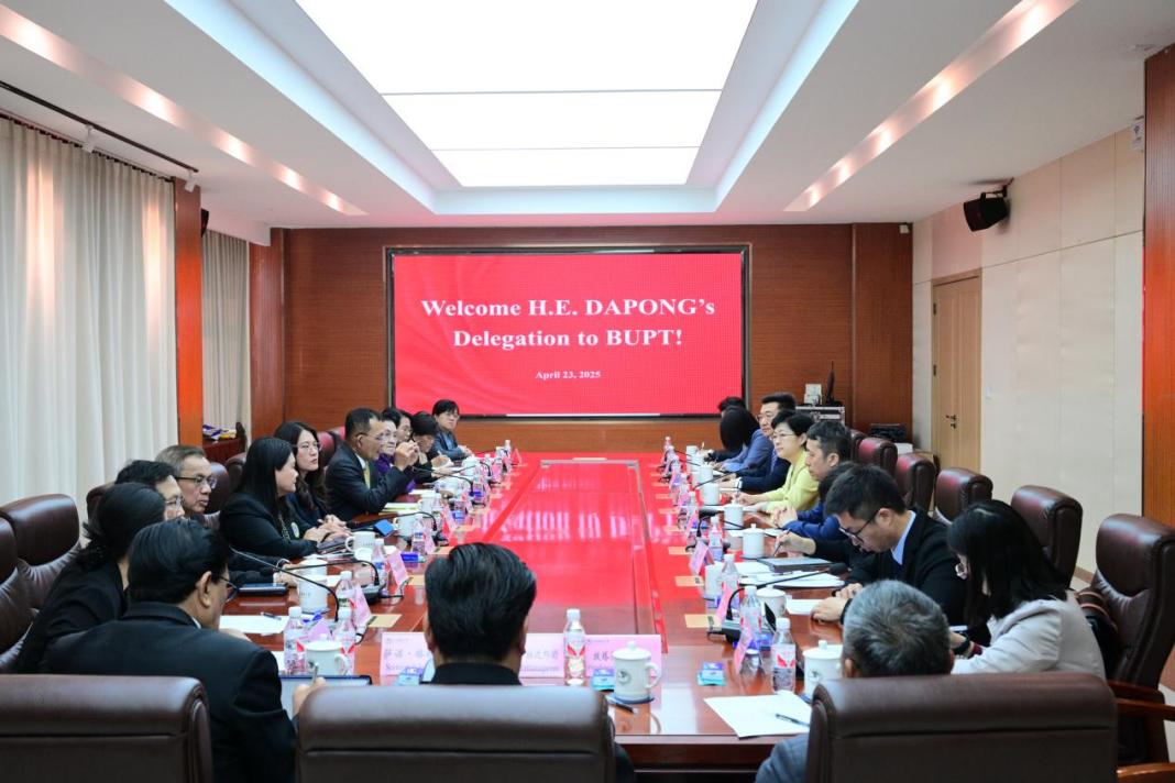 达蓬•拉达那素万对学校的接待表示感谢。他表示,泰国枢密院作为泰国国王的重要咨询机构,高度关注数字化转型及科技创新对教育发展的促进作用。此次随团访问的有泰国十一所王家大学校领导,希望借此机会建立联系,促进校际合作交流,并借助北京邮电大学的数字技术优势,帮助泰国高校建设更高效的数字教育系统,推动中泰教育事业高质量可持续发展。