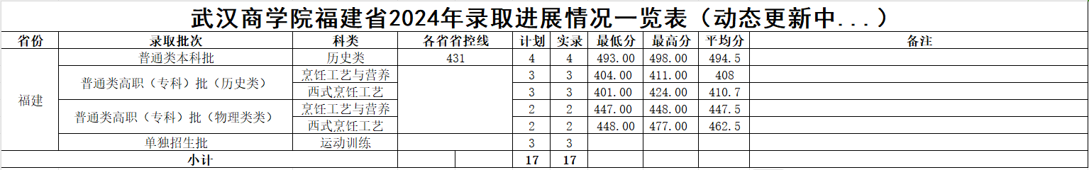 武汉商学院福建省2024年录取进展情况一览表(动态更新中...)