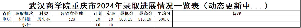 武汉商学院重庆市2024年录取进展情况一览表(动态更新中...)