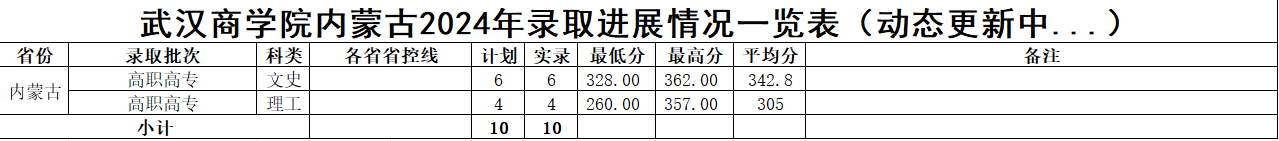 武汉商学院内蒙古2024年录取进展情况一览表(动态更新中...)