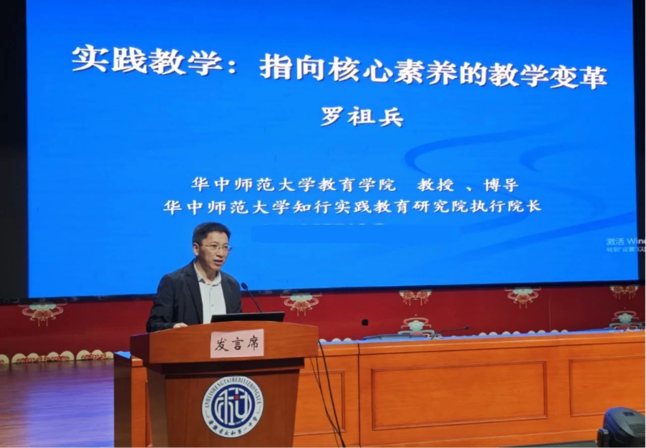 在活动现场,罗祖兵老师为在座各中学教师开展了题为《实践教学:指向核心素养的教学变革》的专题报告,从实践基础理论、学科实践的实施与类型、核心素养与实践教学的关系等方面进行了阐述。他指出,知识学习只有通过实践才能形成素养,实践教学要通过直接参与、创设情境、运用实例、课堂操练等方式发展学生核心素养,强调了知行合一教育理念的重要。现场各中学教师对我校教授精彩生动的汇报表示高度认可。