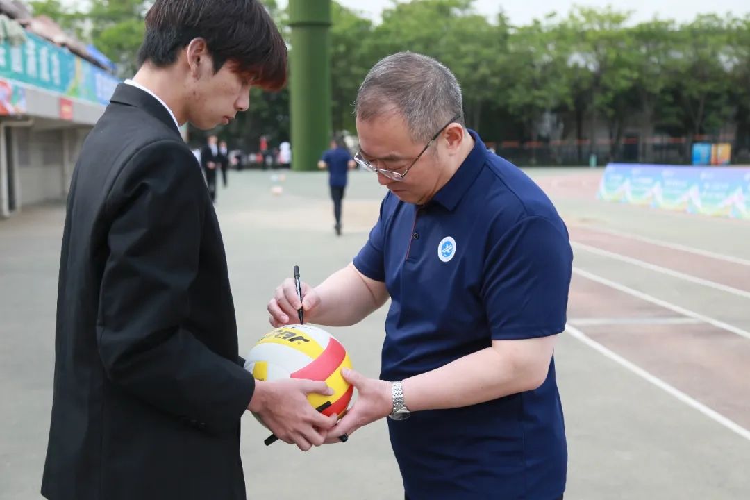 开幕式前,校领导与各院(系)学生亲切互动,为学生们赠送象征团结与活力的运动用球,现场掌声雷动,热情高涨。