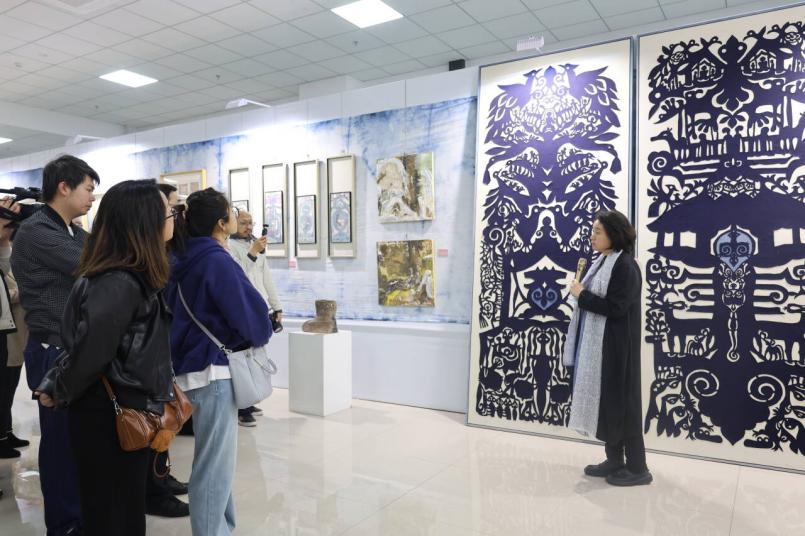仪式结束后,知名策展人、学者萧煌,中央美术学院燕郊校区美术馆馆长吴守峰分别作题为《长白山非物质文化遗产的学术建构与产业升级》《历史名画中的五色》专题讲座。《从黑土地到联合国——长白山民间艺术当代作品展》同步开展。展览以长白山民间艺术为核心,通过“先行”“物化”“传承”三大展区,全方位呈现长白山民间艺术从起源、发展到走向世界的实践探索历程。