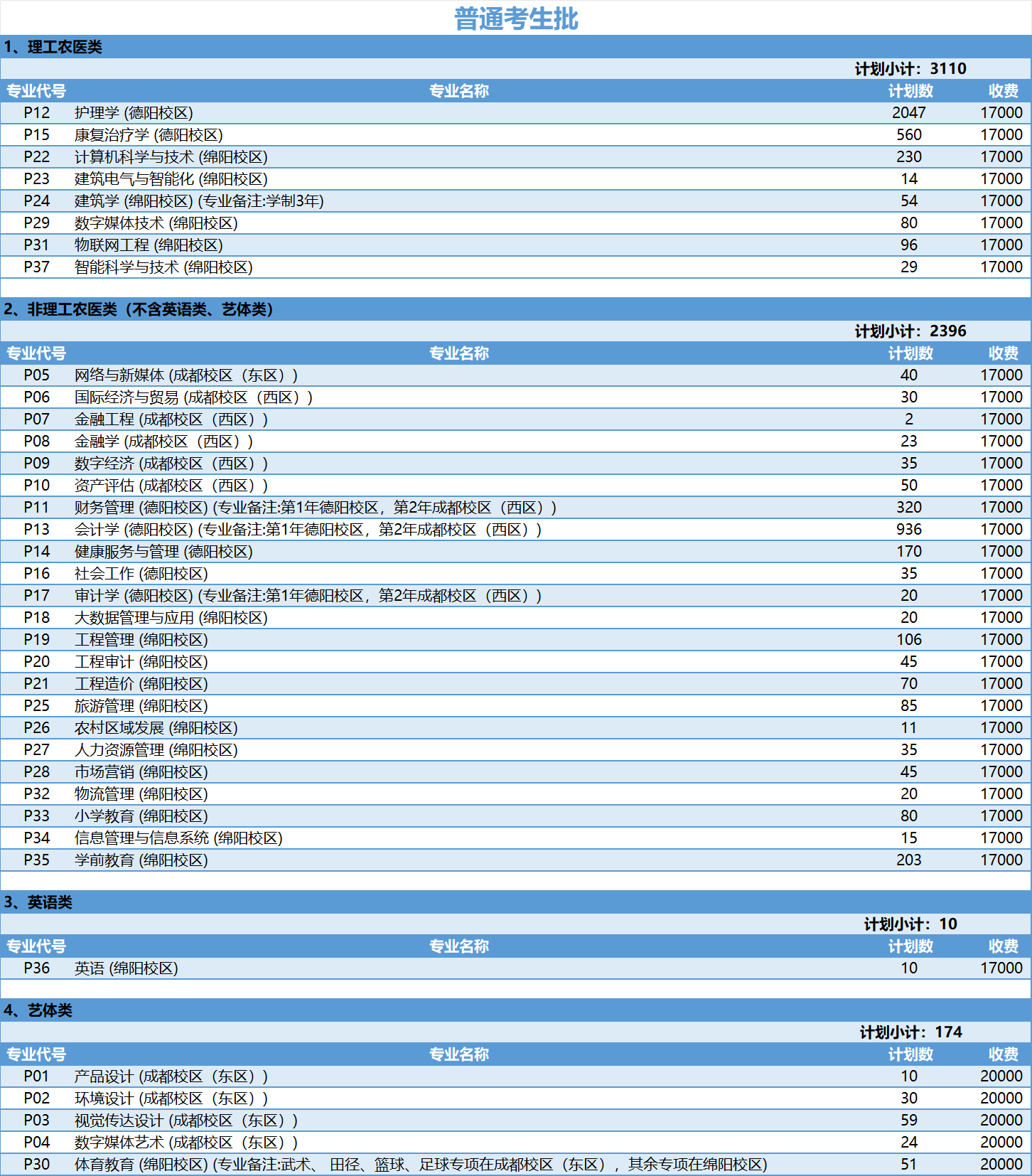 注:学校招生专业、招生计划数、招生类别、学费标准等均以四川省教育考试院最终公布为准。