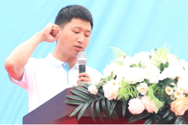 24级大数据技术3班王洁、体育教师任继跃分别代表运动员和裁判员庄严宣誓,承诺将以最佳状态投入比赛,严格遵守竞赛规则,确保赛事的公平公正。