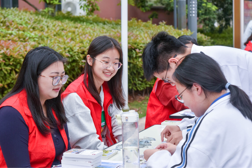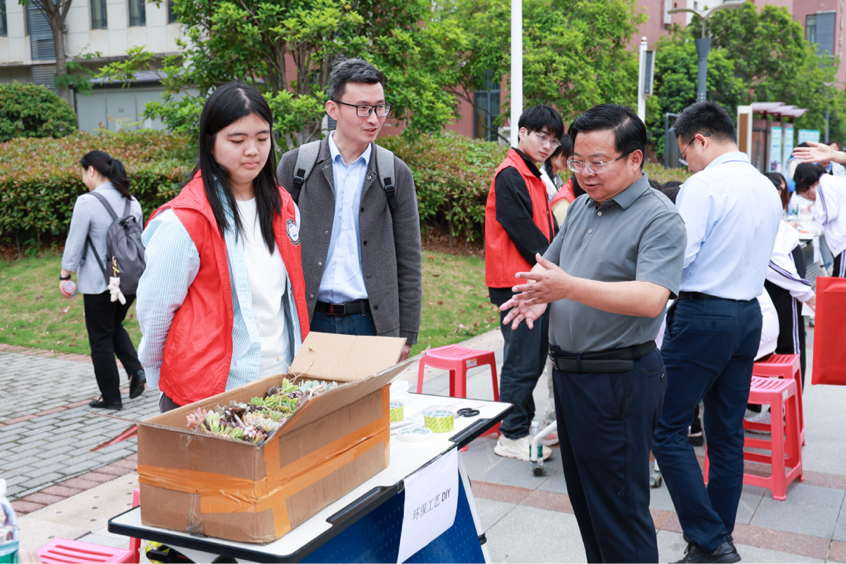 在科普活动区,气象协会进行天气瓶DIY和气象科普,绿色协会进行树叶画和植物拓染,CUG-China团队进行合成生物学科普,爱我千湖社团进行主题科普,此外还有实验室自制生物炭展示介绍、垃圾分类游戏、低碳知识有奖问答、环保工艺品DIY等科普展示讲解活动。