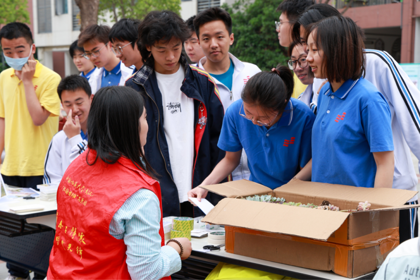 高中学子热情参与,积极体验气象瓶制作、植物拓染、环保工艺品制作和科普知识问答等活动。