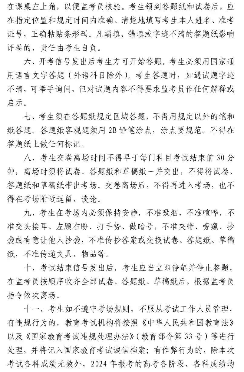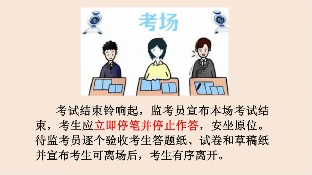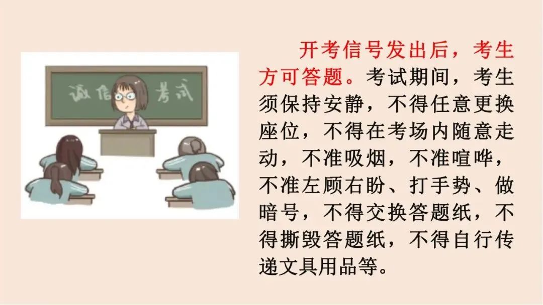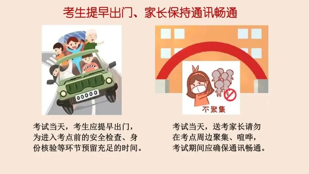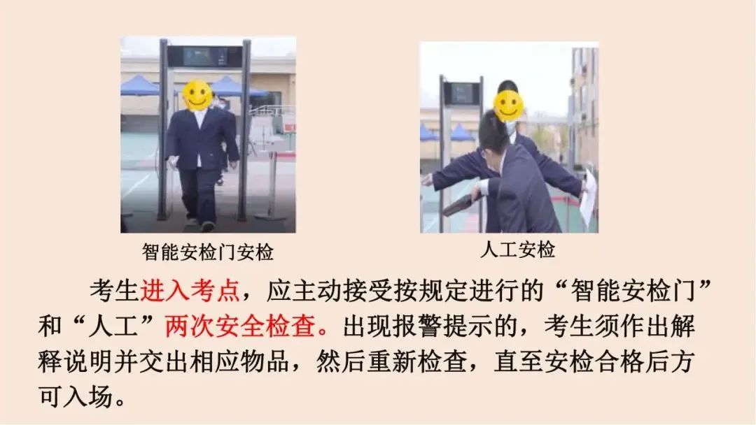 1.考生应充分考虑交通、天气等因素,合理安排出行时间及路线,每科开考至少45分钟前到达考点,主动接受按规定进行的安检后进入考点。迟到15分钟者不得进入考点。