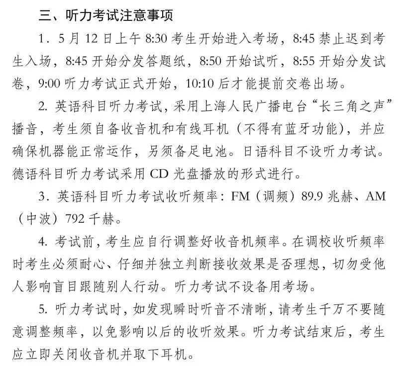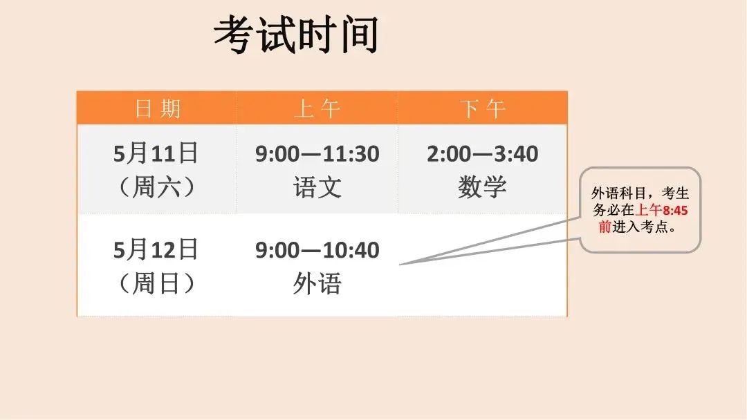 (3)5月12日上午外语科目考试, 8:45起禁止考生进入考点考试,10:10后考生可提前交卷出场。