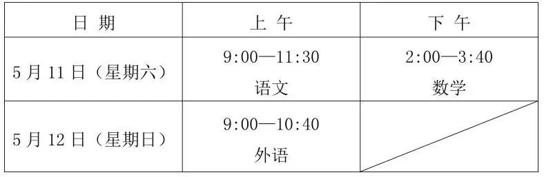 (2)5月11日下午数学科目考试, 2:15起禁止考生进入考点考试,3:10后考生可提前交卷出场。