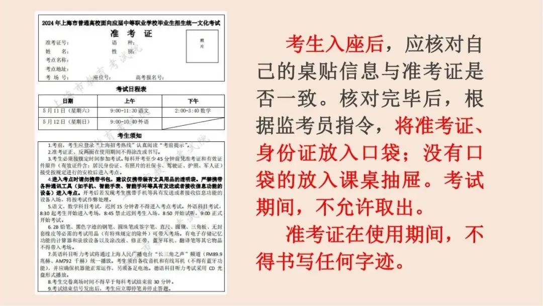 为确保考生能够顺利参加考试,上海市教育考试院提醒考生注意以下事项: