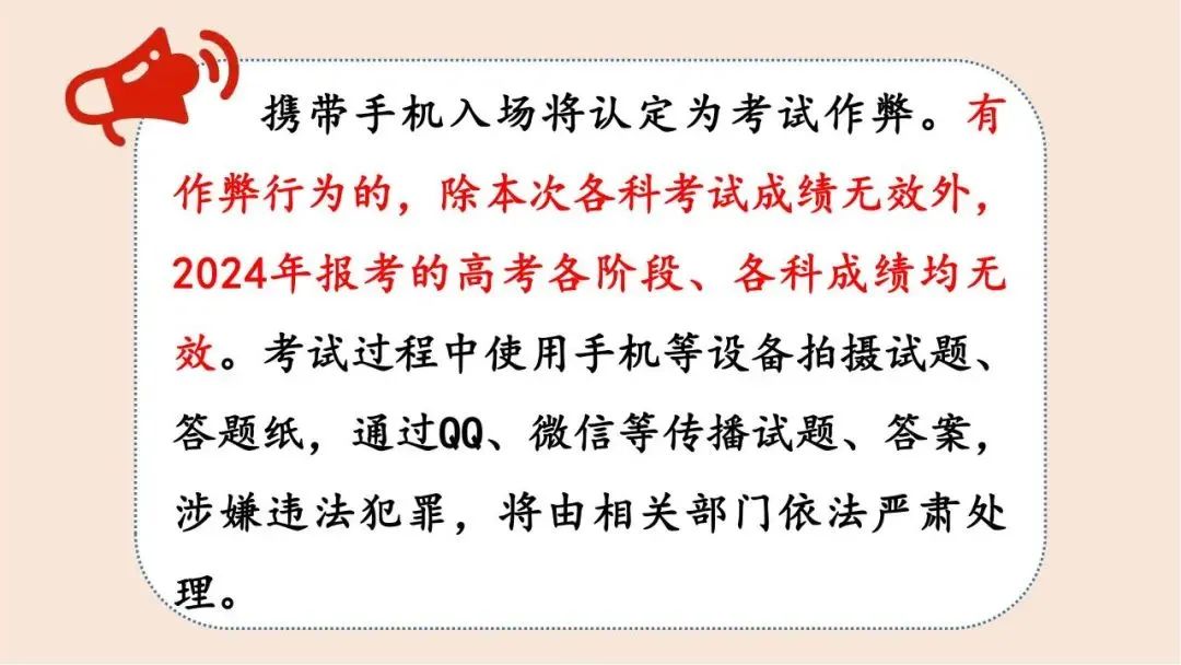 特别提醒:开考后一旦在考场内发现考生携带手机,无论是否开启与使用,一律按作弊处理。