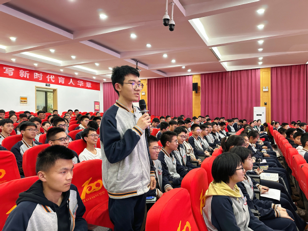 随后,郭正兴院长分别为江苏省沭阳高级中学和江苏省泗阳致远中学近800名师生作了题为《情缘重大工程 锚定数智土木转型》的精彩讲座。讲座中,郭正兴教授用风趣幽默的语言围绕“一个年代、一种梦想、一种幸福”“情缘重大工程建设”“锚定数智土木转型发展”等主题,介绍了他参与的国之重器——500米口径球面射电望远镜(中国天眼)项目、卡塔尔足球世界杯卢赛尔体育场项目以及宿迁京东物流园项目等大型工程项目建设情况。郭教授用自身的学习成长经历激励着同学们树立家国情怀,立志做有理想、敢担当、能吃苦、肯奋斗的新时代好青年。讲座现场座无虚席,互动热烈,有效激发了同学们报考我校的热情和对土木工程学科的兴趣。