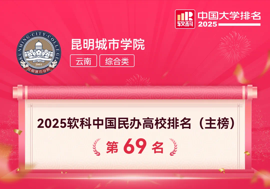 近日,高等教育专业评价机构软科发布“2025软科中国大学排名”。昆明城市学院以提高品质和加强特色为重心,秉承“办最好的应用型大学、最关爱学生的大学”的办学愿景,现跻身全国百强院校,目前排名第69位,距离成为全国知名的民办应用型大学又进了一步!