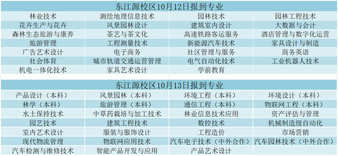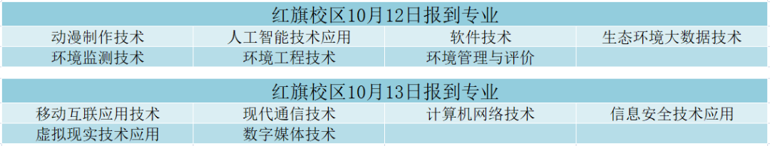 备注:生态建设与环境保护学院、通讯与信息学院的三年制大专(除物联网应用技术专业外)新生在红旗校区报到。
