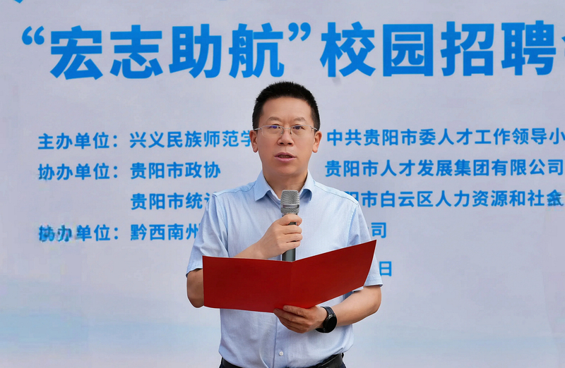 为深入学习贯彻党的二十大精神,落实党中央、国务院和省委、省政府“稳就业”“保就业”决策部署,全力促进我校 2025 届毕业生充分高质量就业。4月28日,由中共贵阳市委人才工作领导小组和学校联合举办的“筑人才·强省会”贵阳贵安2025年高校毕业生留筑行动暨“宏志助航”校园招聘会在学校中心广场正式启动。