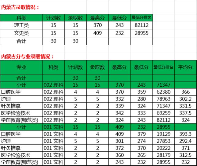 2024年内蒙古自治区录取情况