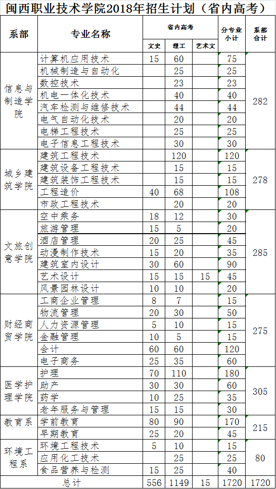 2018年高考省内招生计划