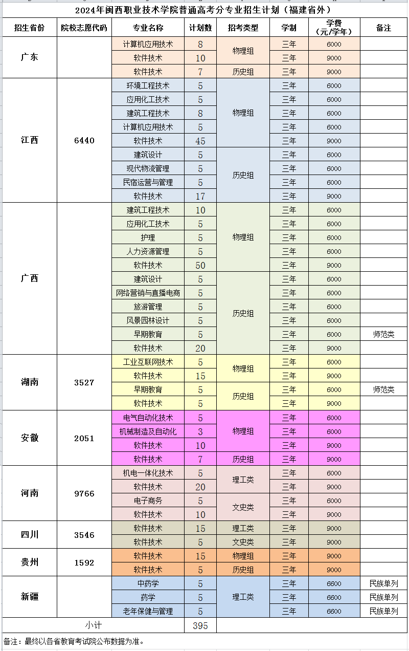 2024年闽西职业技术学院高考招生计划(福建省外)