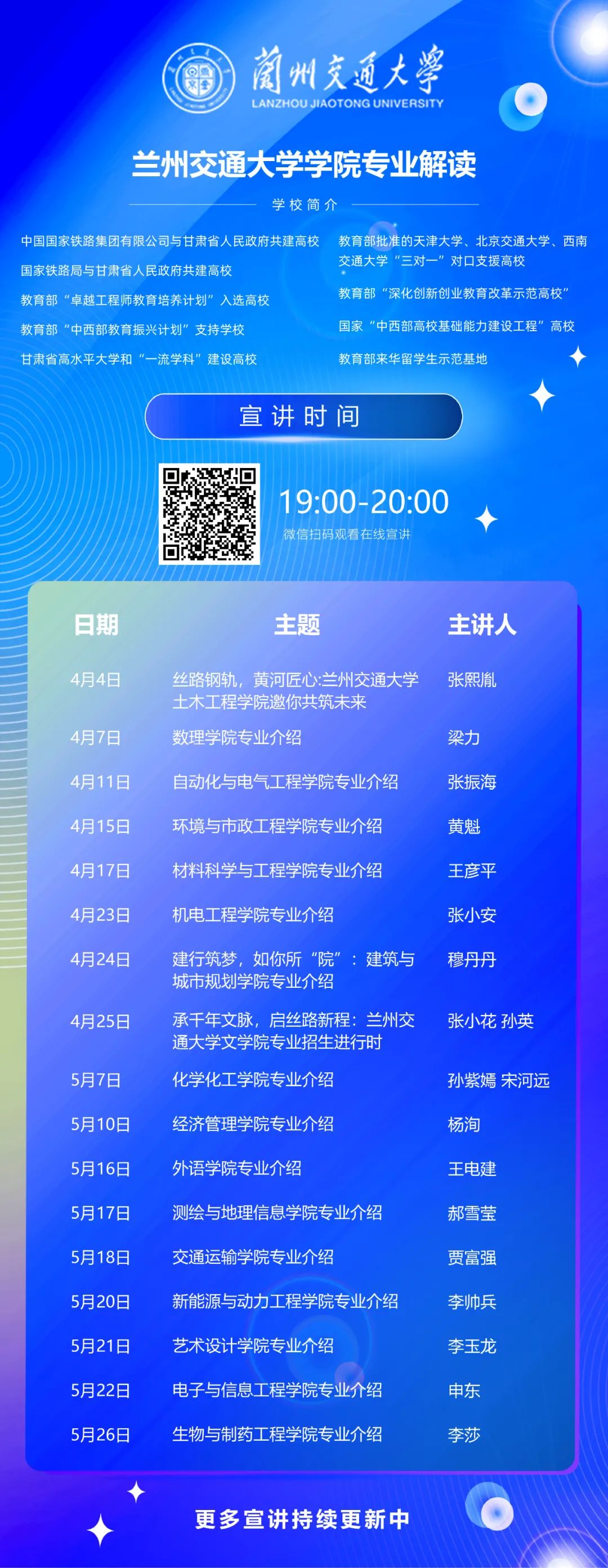 「往期推荐」1.最小16岁,王姓最多!一图解密2024本科新生大数据2. 兰州交通大学2024年本专科招生再创佳绩3.兰州交通大学在中国大学排名中稳步提升4.兰州交大已向国铁集团输送应届毕业生1600余人5.关于开展“我为交大代言”2025年寒假优秀学子回访高中母校开展招生宣传的通知