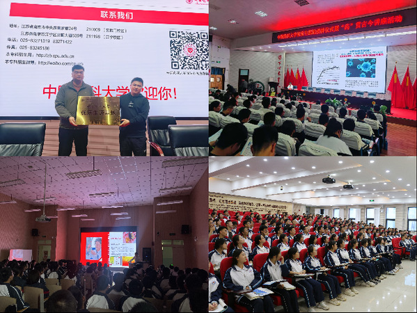 为普及药学知识、激发中学生科学兴趣,同时加强高校与中学的交流合作,中国药科大学博士生导师教务处副处长李曹龙教授与宁夏招生宣传组组长万鸿亮于2025年4月15-16日走进宁夏平罗中学和宁夏育才中学开展宣传活动,受到了中学师生的热烈欢迎。李教授为高三学子做了题为“药”贯古今的科普讲座,结合前沿案例和行业动态,深入浅出地讲解了药物研发、生物技术应用等知识。讲座现场气氛活跃,学生们踊跃提问,展现出对药学科学的浓厚兴趣。此外,李教授详细介绍了学校的学科优势、专业特色等,并解读了针对西部地区的录取政策及就业前景,鼓励优秀学子报考。李曹龙教授结束了宁夏的讲座又于次日与陕西招生宣传组长高源一同来到了陕西重点中学延安新区高级中学,与校方领导开展座谈交流,并对高中生开展药学科普讲座。