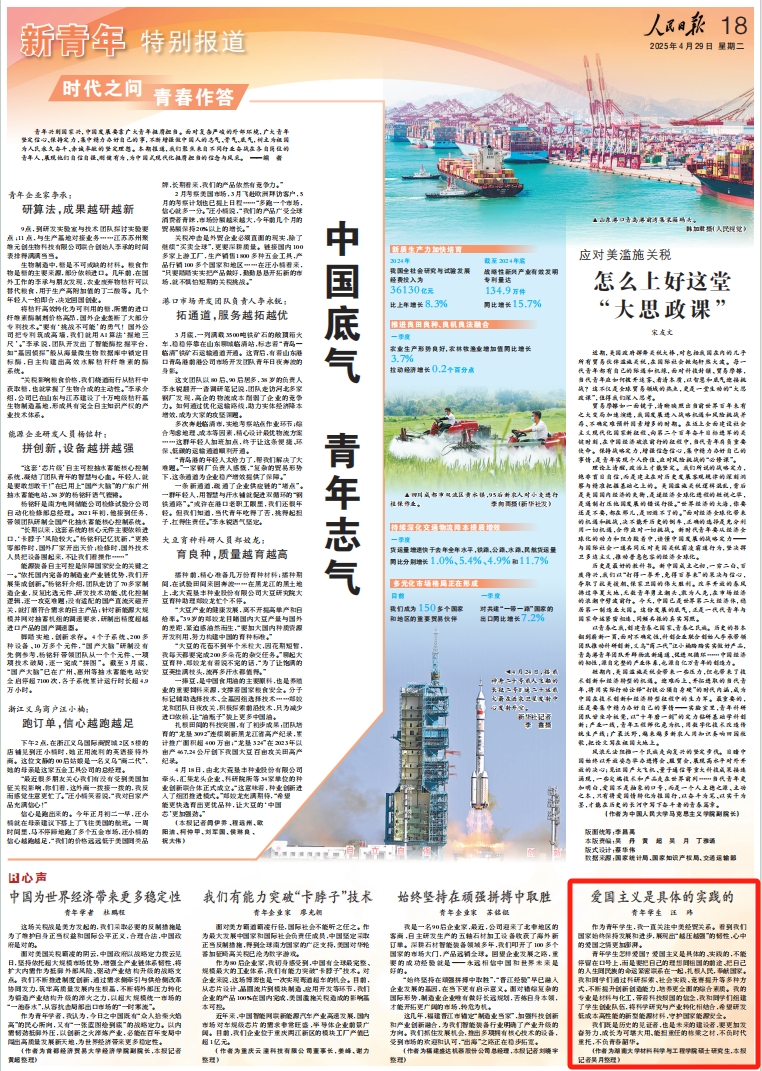 作为青年学生,我一直关注中美经贸关系。看到我们国家始终保持发展和进步,展现出“越压越强”的韧性,心中的爱国之情更加澎湃。