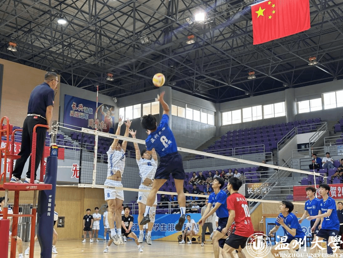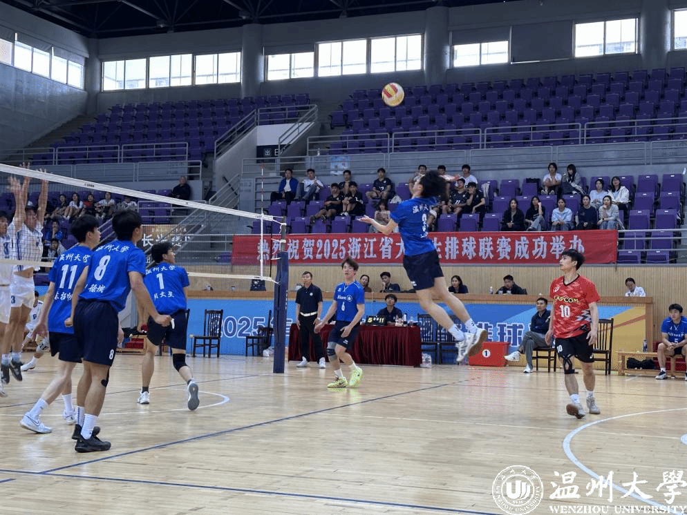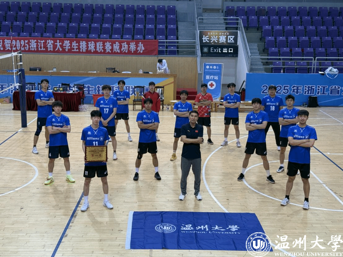 2025年浙江省大学生排球联赛(乙丙组)于4月24-28日在湖州长兴举行,温州大学男子排球队力压群雄,再获省级比赛冠军!