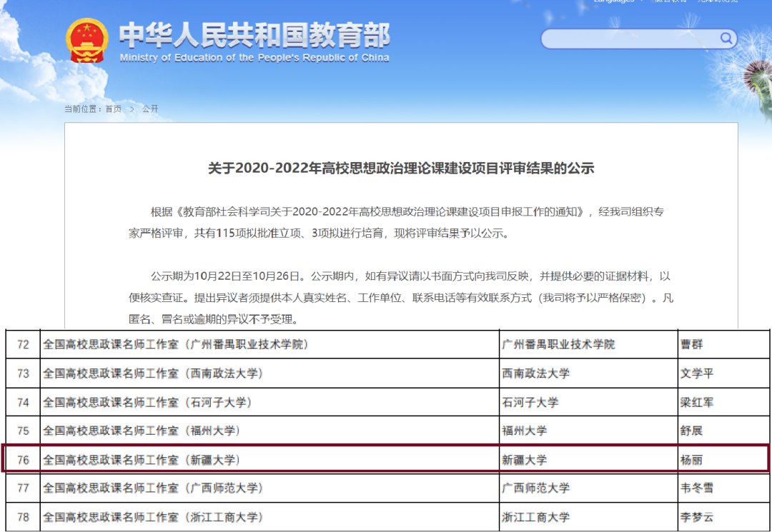 “杨丽名师工作室”获批全国高校思想政治理论课名师工作室