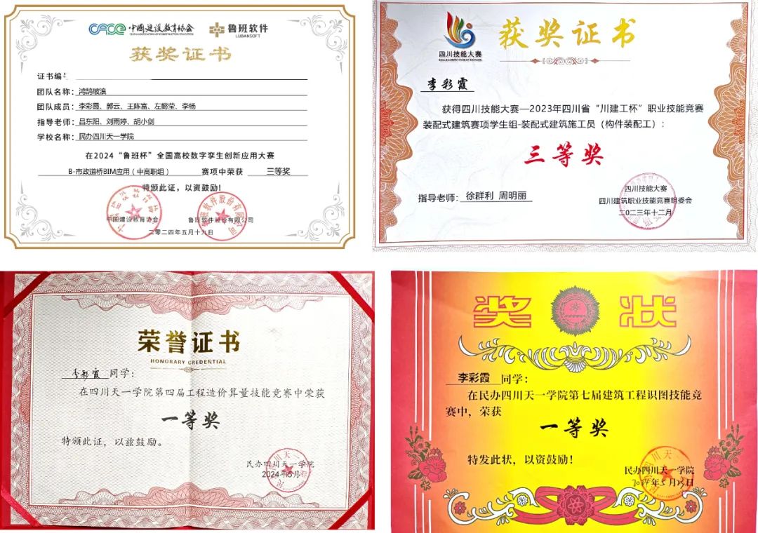“四川省综合素质A级证书”等荣誉