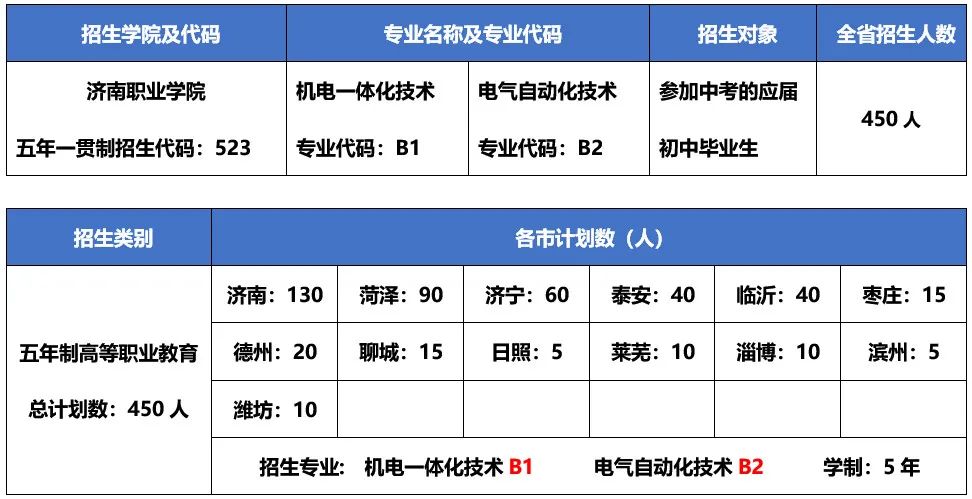 特色教育、特色人才:五年一贯制高职是山东省教育厅批准的,济南职业学院与济南二机床集团有限公司校企联合培养和现代学徒制教学试点项目。学校、企业双主体办学和育人,校企资源共享、职业学院优秀教师和企业高端技术、技能人才共同参与教学,进行“双师”培养。