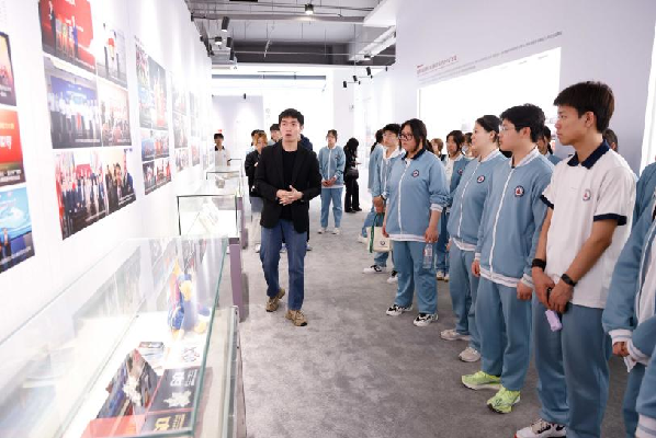 在教务处本科招生办老师的带领下,来校师生首先参观了校史馆和中国漫画馆,并在校史馆阶梯处合影留念。