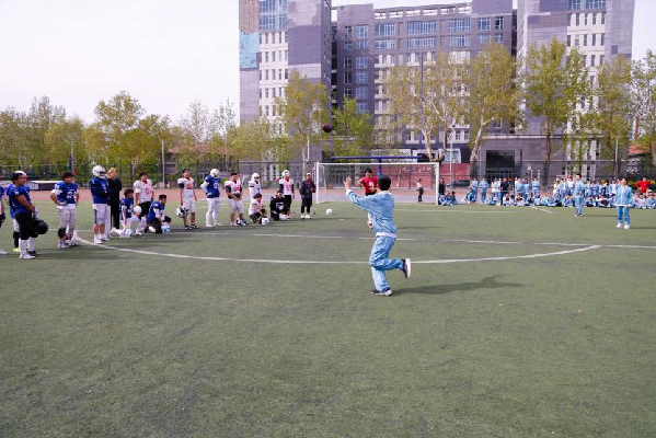 学生体验橄榄球运动