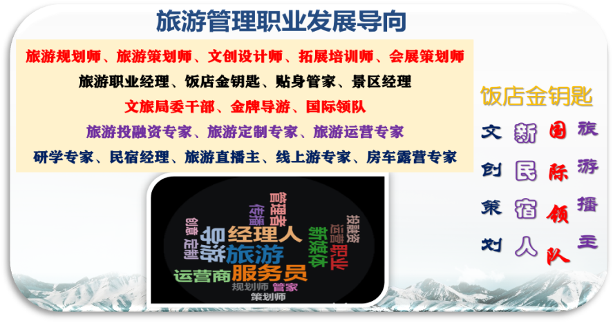 旅游管理专业着力培养系统掌握现代旅游管理理论、方法和信息智能技术,具有国际视野、文化底蕴和数字智能,能在各类旅游企事业单位、各级文旅行政管理部门从事文旅服务策划、数智旅游运营等工作的德智体美劳全面发展的高水平应用型人才。
