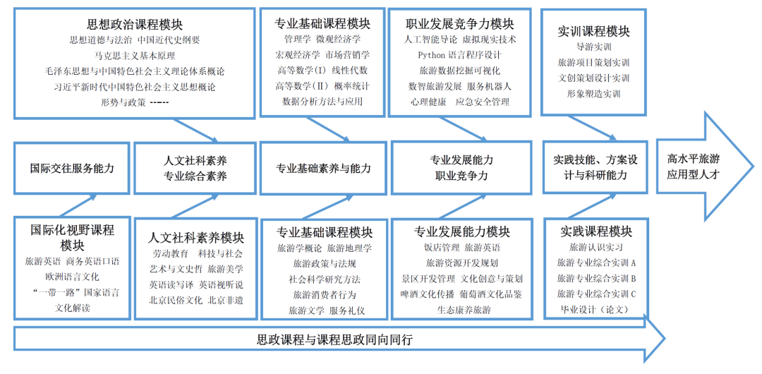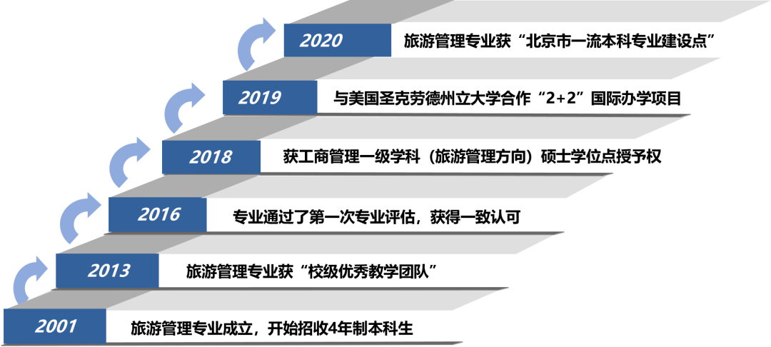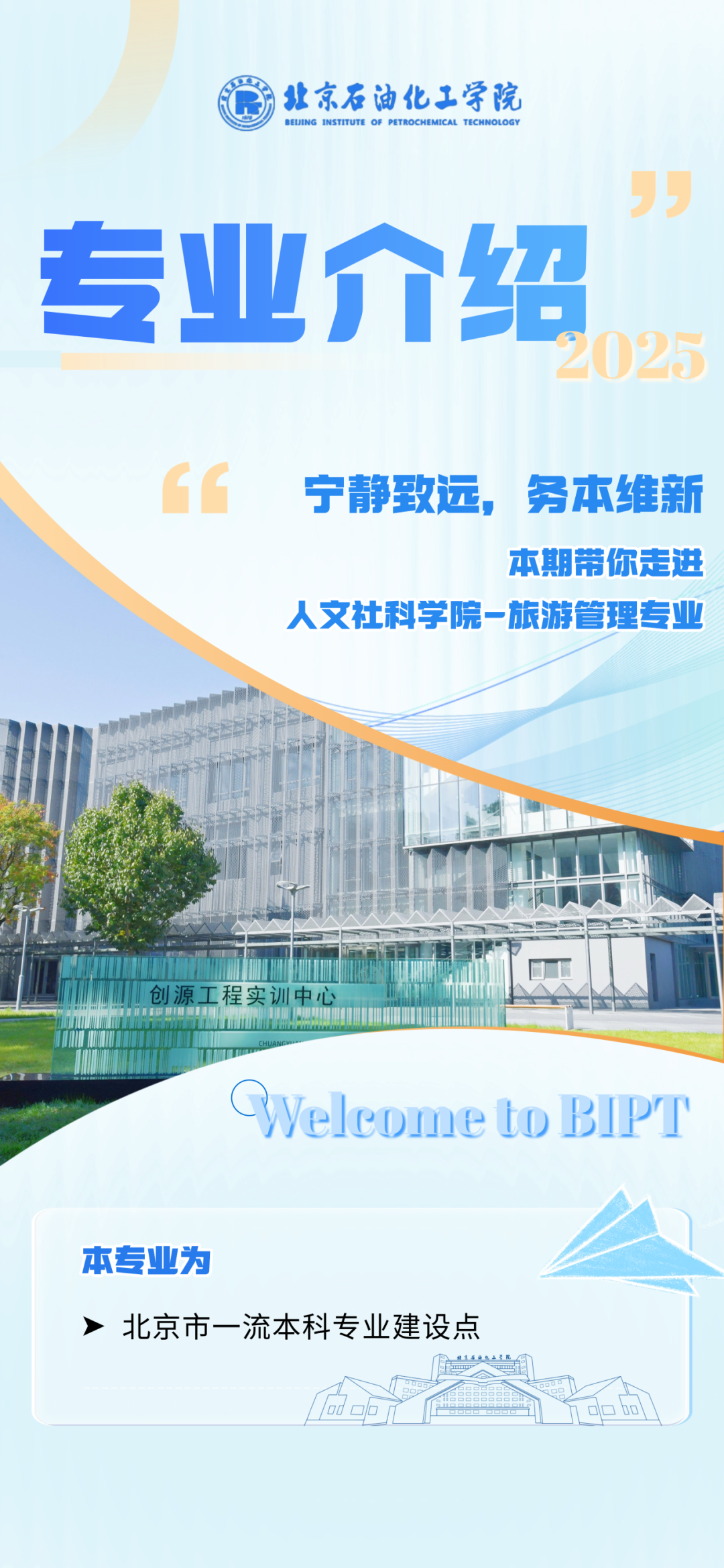 旅游管理专业围绕服务北京建设“四个中心”城市、世界历史文化名城和世界旅游名城的旅游专业人才需求,着力培养系统掌握现代旅游管理理论、方法和信息智能技术,具有国际视野、文化底蕴和数字智能,能在各类旅游企事业单位、各级文旅行政管理部门从事文旅服务策划、数智旅游运营等工作的德智体美劳全面发展的高水平应用型人才。