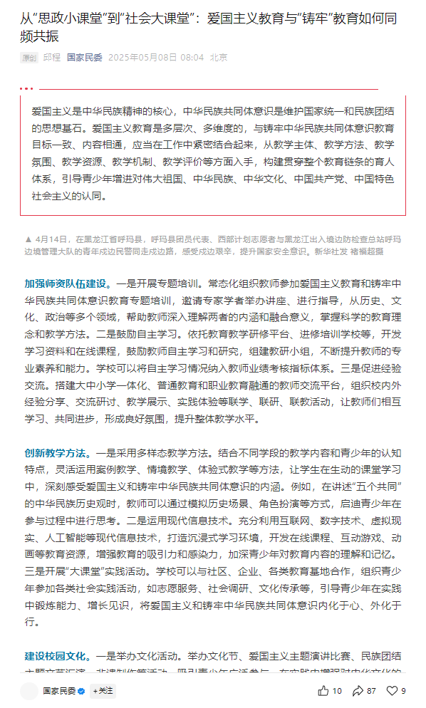 国家民委:从“思政小课堂”到“社会大课堂”:爱国主义教育与“铸牢”教育如何同频共振