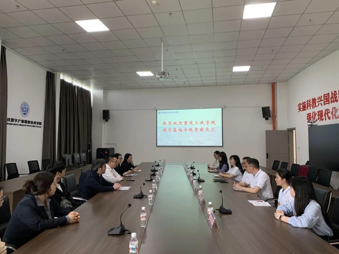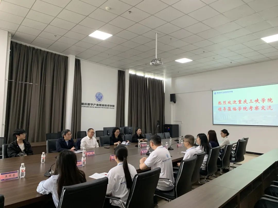 4月25日,重庆三峡学院马克思主义学院党总支书记秦勤、副院长任鹏,数学与统计学院党总支书记黄明靖一行到重庆数字产业职业技术学院,就学科建设、教学科研及人才输送等关键议题展开深入交流研讨,旨在构建双方多领域协同发展的合作平台。学院副院长潘峰、人事处处长倪娜、教务处处长贾蕾及思政教研室全体教师参加。