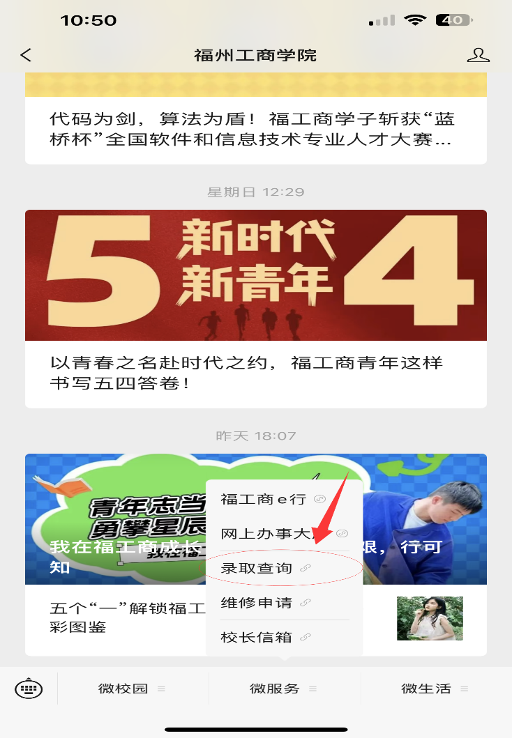 扫描下方二维码,关注“福州工商学院”官方微信公众号;